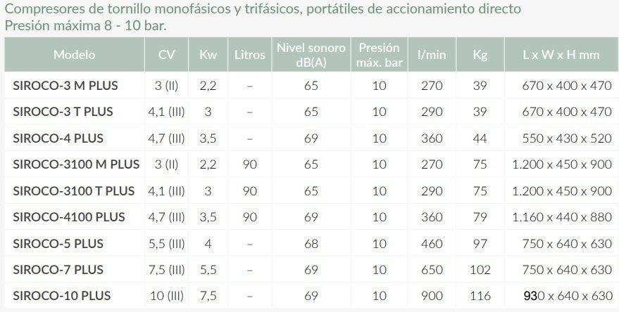 Los compresores de la serie SIROCO han sido diseñados para poder proporcionar aire comprimido en las aplicaciones que no permiten una gran potencia, pero requieren un caudal continuo de aire en los sectores